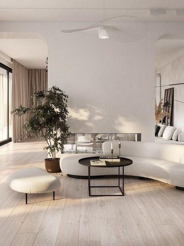 Phòng khách được thiết kế hoàn toàn bằng những tông màu "trendy" đem lại cảm giác ấm áp và gần gũi vô cùng (Nguồn: Pinterest)