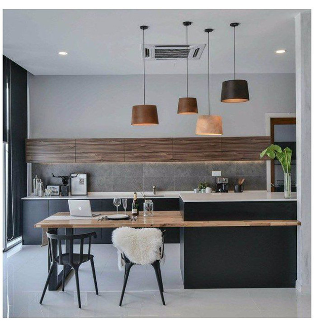 Đảo bếp vừa được sử dụng làm bàn ăn và bàn làm việc (Nguồn: Pinterest)