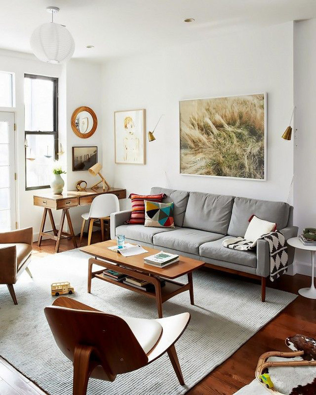 Sự kết hợp hài hòa giữa những tông màu xu hướng và tông màu phổ biến tạo điểm nhấn cho phòng khách (Nguồn: Pinterest)