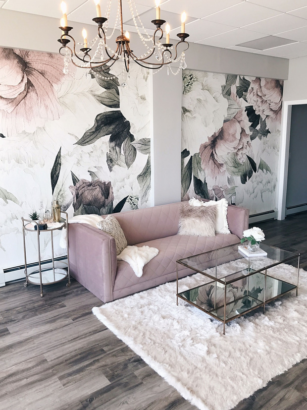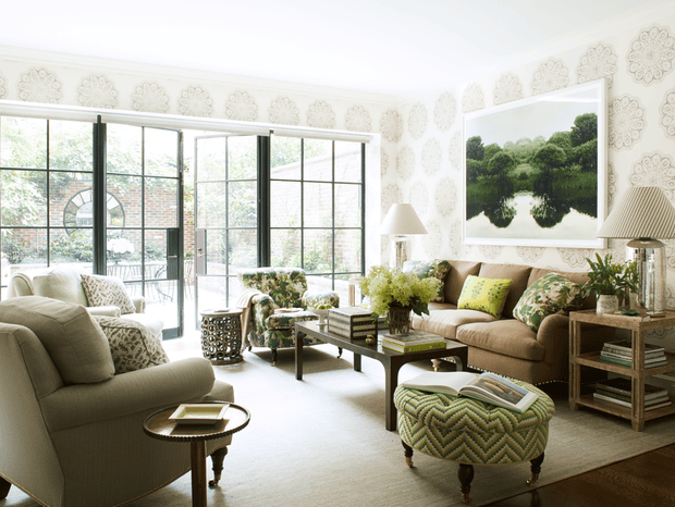 Phòng khách trở nên vô cùng rực rỡ với tường hoa và nội thất ton-sur-ton (Nguồn: Pinterest)
